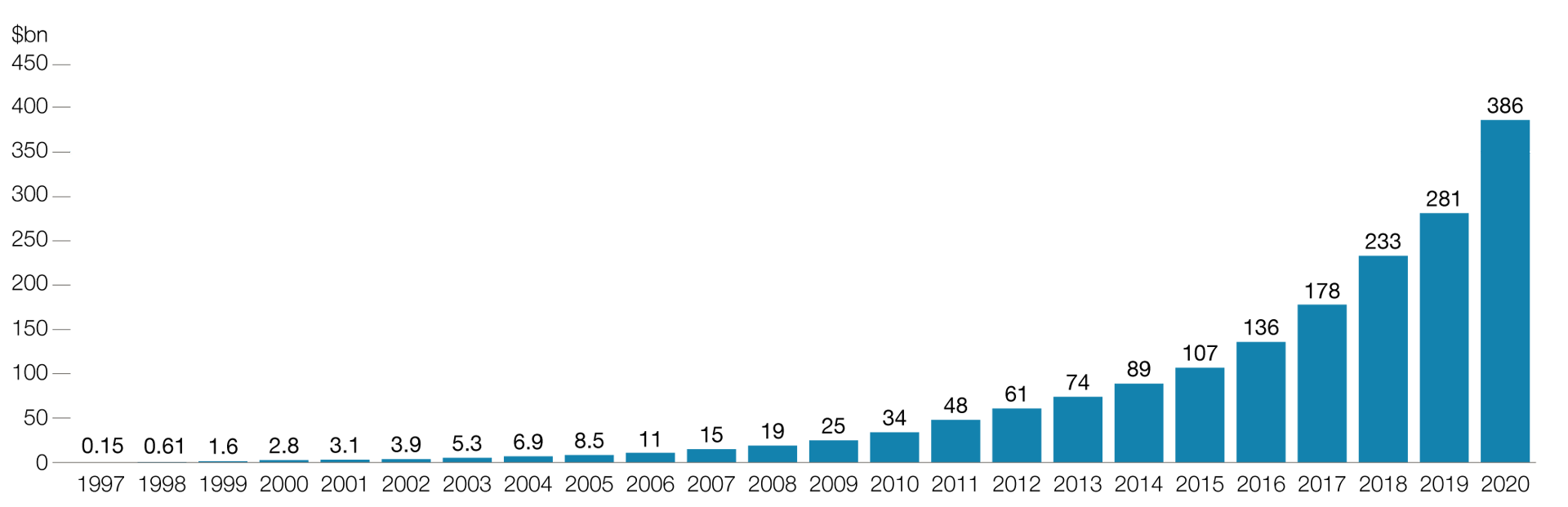 I’m sure that many of you will recognise these numbers as the annual revenues of Amazon. They rather understate progress as the accounting for third party fulfilment is conservative. But we still have a compound growth rate of 41% per annum for over two decades. For those, like Graham, who prefer the bottom line then 2020 produced $31bn in free cash flow. This pattern of sustained growth at extreme pace and with increasing returns to scale has become more and more evident since the emergence of digital technologies as first exemplified by Microsoft (still growing after 35 years as a public company).
